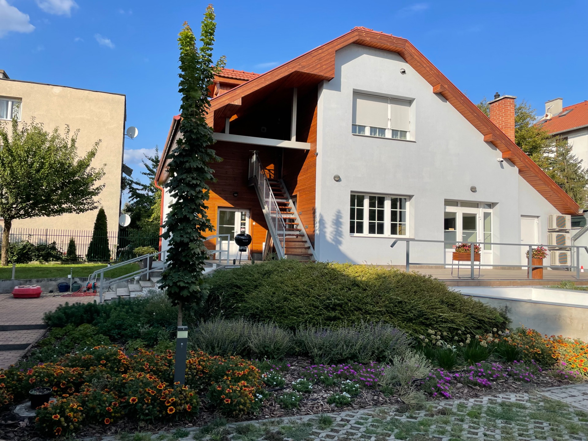 A kellemes, zöld környezet és a csendes környék kifejezetten alkalmassá teszi az épületet erre a célra.